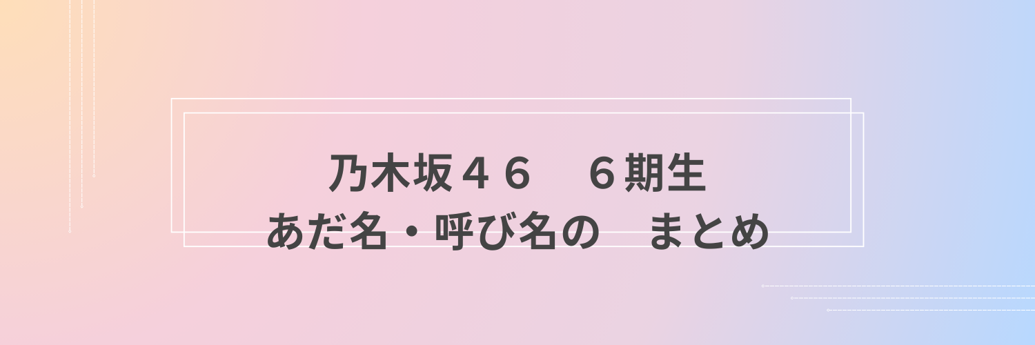 乃木坂46の6期生メンバーのあだ名をまとめました。「メンバー同士」「乃木坂スター誕生(あーや命名)」「ライブコール」の3つに分けて一覧にしております。まだまだ初々しさがある6期生を応援したくなりますね。まだ浸透していないものや非公式?!もあるかも知れませんんが、少しでも呼ばれていると、随時追加したいと思います!